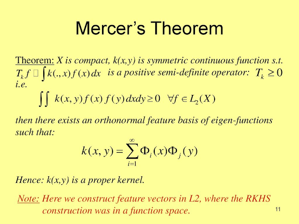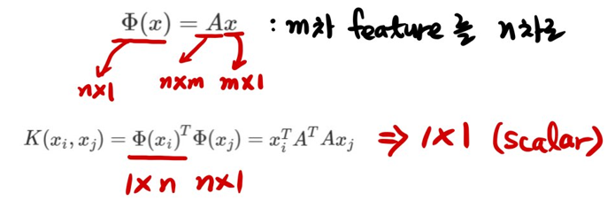 - K(xi, xj) = K(xj, xi) = <Φ(xi), Φ(xj)>를 만족하는 mapping Φ 가 존재한다.
