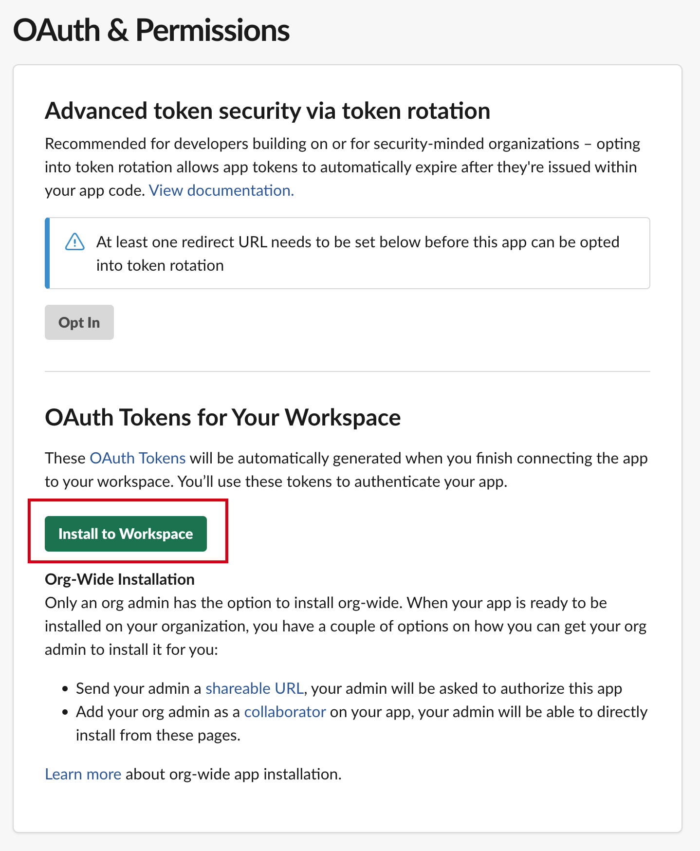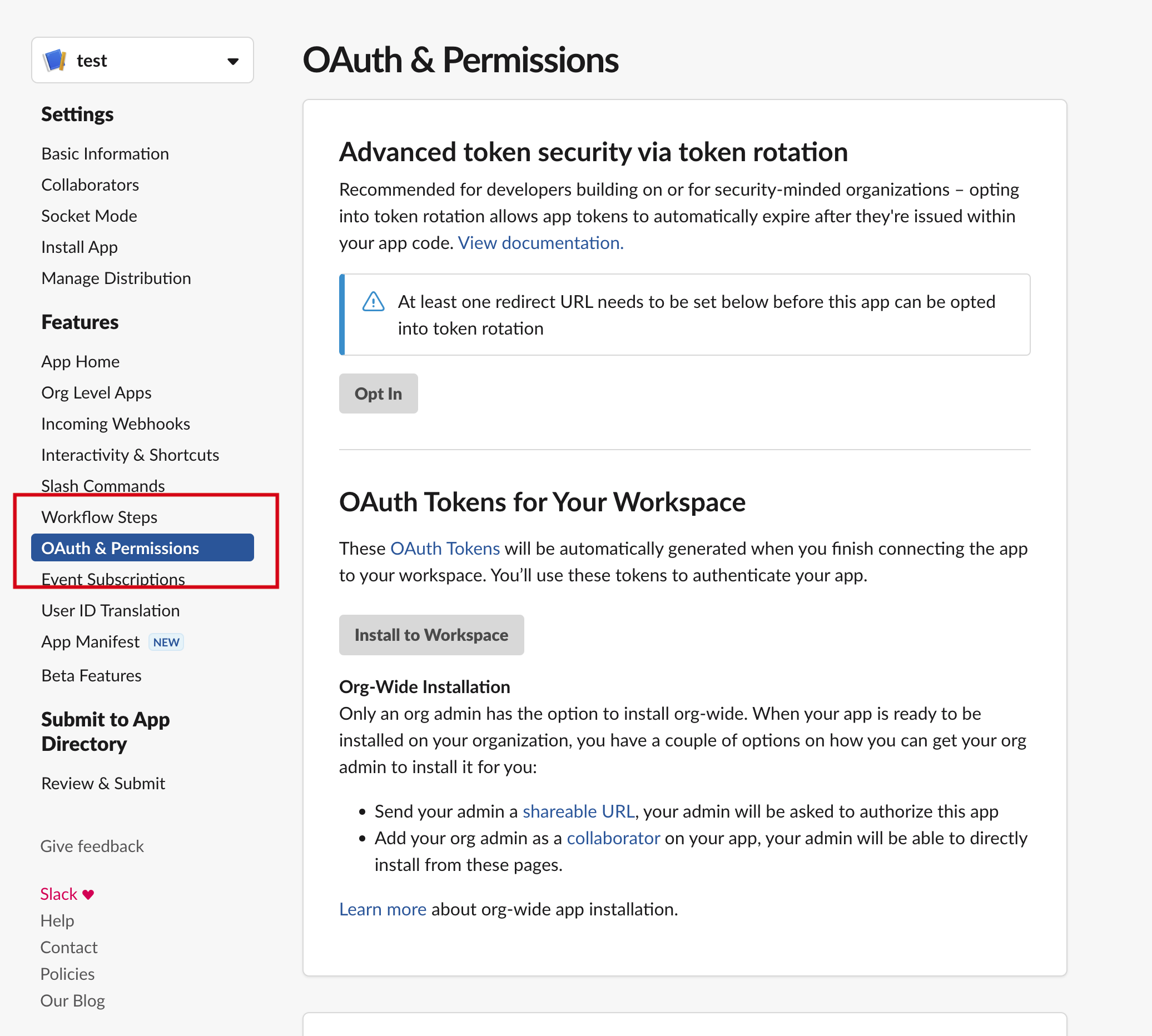 2-2.Slack app 권한 설정 및 token 발행