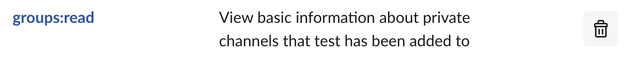 해당 페이지에서 확인 할 수 있다. 채널을 private하게 생성한 경우라면 Scope에 'groups:read' 를 추가하면 된다.